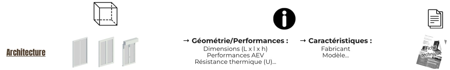 Chaque composant d’une construction est en réalité caractérisé par des informations dimensionnelles, techniques, etc. Cette base d’informations se doit d’être fiable, le renseignement de celles-ci est rigoureux mais prend plus de sens lors de gestion de projet. Elle apporte des informations supplémentaires et non négligeables.