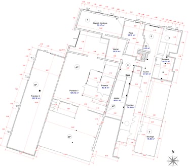 Dessinées à la main une par une, à l'ancienne, ou via un logiciel de CAO/DAO (type Autocad Autodesk), chaque niveau de chaque discipline est retranscrit au format papier ou PDF.