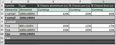 Les nomenclatures sont exportées sous forme de tableaux Excel plus élaborés.