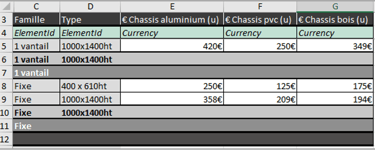 1 nomenclature Revit = 1 un classeur/feuille sur Excel