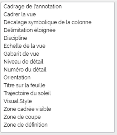 choisir les paramètres à afficher pour les modifier (inclus gabarits de vues, titres d’arborescence, ... et les paramètres de projet/partagés créés et appliqués aux vues)