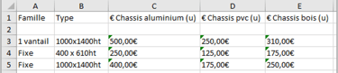 On peut facilement lire et modifier directement la donnée dans le tableur :